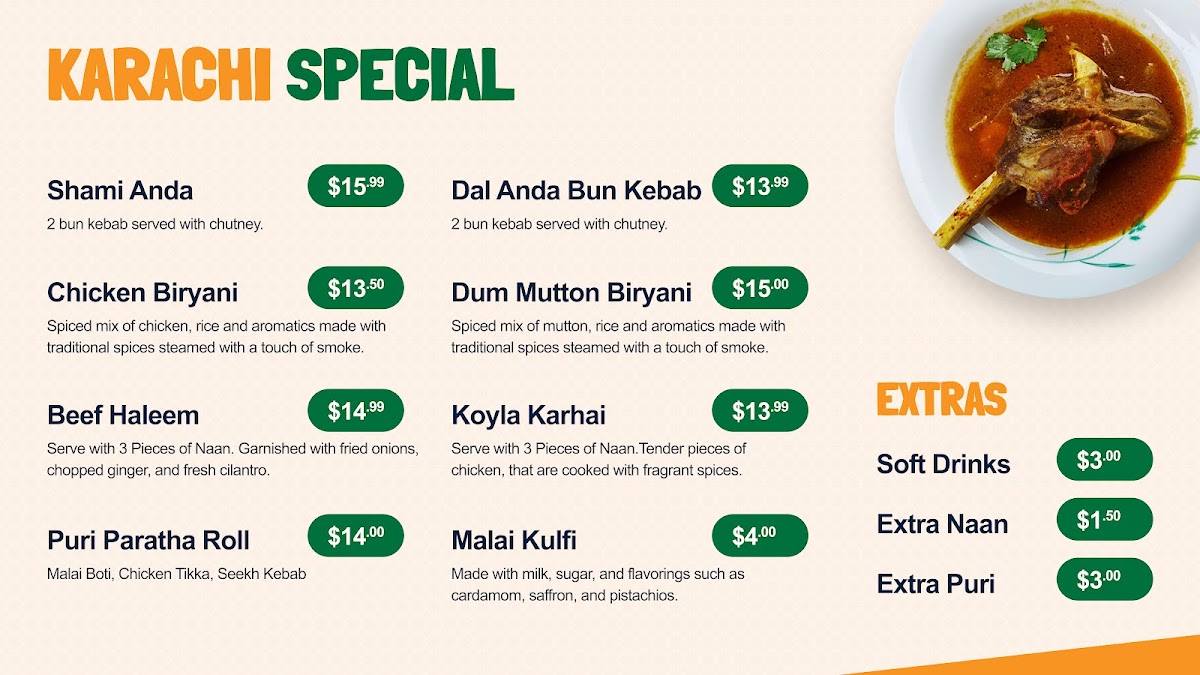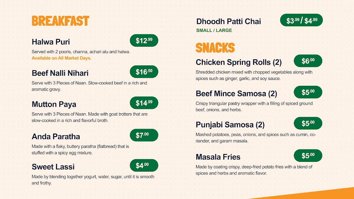 At the heart of Dandenong Market, you'll find the vibrant flavors of Spirit Of Pakistan Menu. This culinary gem brings the rich, aromatic tastes of Pakistan to Australia, offering an inviting selection of dishes that perfectly blend tradition with a modern touch. Whether you're in the mood for a hearty plate of biryani, tender kebabs, or flavorful curries, the menu is designed to take your taste buds on a journey through Pakistan’s diverse regions. With every dish carefully crafted, you'll discover a symphony of spices that will leave you craving more. The ambiance is relaxed, making it the perfect spot for a casual lunch or dinner, where the flavors speak for themselves.